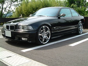 E36最盛期に流行った外装をそのまま維持しています、ホイールも当時流行ったDTMの18インチです。
