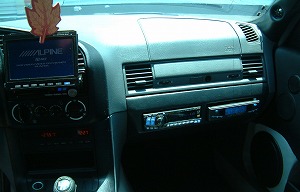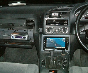 内装:エアコン操作パネル下の 2 DIN に無理やり押し込んだ iPod 対応 HDD ナビ.