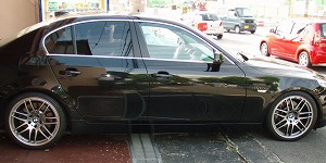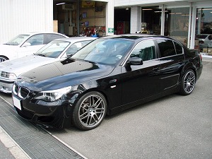 | Voyagerさん 愛車E60-545iホイル&タイヤ、F:8.5J/19 R:9.5J/19、F:245/35/19 R:275/30/19、フロントリップ:HALTGE、リアスポ:BMW純正、 |