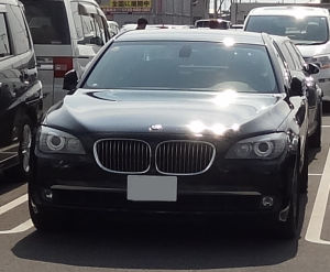 G7首脳の送迎車として政府が用意したBMW車(成田ナンバー)であり、2010年のAPECでも活躍しています。日本車としてVIP警護を特化した防弾車両が用意できず、これらはBMWやメルセデスの独壇場となっています。当時のAPEC開催時に貸し出したモデルが今回も利用されており、やや古さを隠せませんが、BMWのイメージアップには繋がったでしょう。日本では装甲車と呼ばす、防弾車と呼ぶようです。