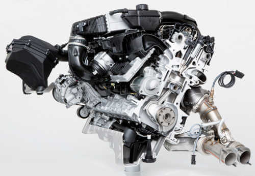| クリーンディーゼルとは | 直列6気筒をベースに直噴直接燃料噴射(コモンレール・ダイレクトインジェクションシステム)と可変ジオメトリーターボチャージャーを組み合わせた3.0L直列6気筒ツインパワーターボディーゼルエンジンは、最先端の排ガス処理を行う。 ピエゾ・インジェクターを用いた新世代コモンレール・ダイレクト・インジェクション・システムは、最大1800バールの高圧燃料をシリンダー内に直接噴射し燃焼効率を向上。 可変ジオメトリー・ターボチャージャーは、電子制御のガイドベーンの角度をエンジン回転数に応じて可変制御し、排気の流れを最適化。 アクセル操作時のレスポンスの良さと低回転時の高いトルク特性を両立し、燃料消費量も抑制しながら高燃費を実現する。 SCR(選択触媒還元)システムは、排気ガス中にAdblue(尿素水溶液)を噴射して、SCR触媒コンバータにてNOx(窒素酸化物)を低減する。 DPF(粒子状物質除去フィルター)は、排気ガス中のPM(粒子状物質)をフィルターに吸着して燃焼・除去するシステムである。 これらのシステムの採用により、クリーンな低排出ガスを達成。 日本のポスト新長期規制、ヨーロッパのEURO6をクリアする高い環境性能を実現。 タービンはギャレット製 GT22「GTB2260VK」 |
