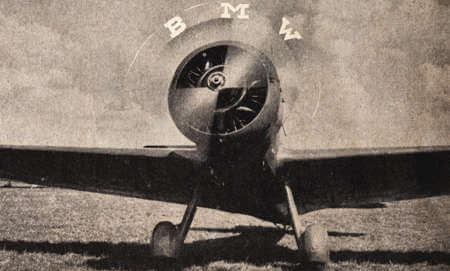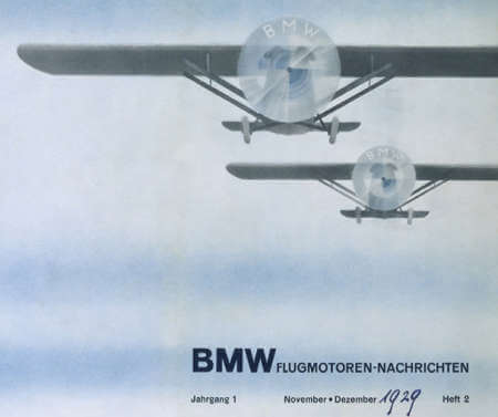 1929年のBMWの広告では、回転プロペラにBMWのロゴが付いた航空機が示されました。世界的な経済恐慌の中で、BMWのイメージを高めるため、新しい航空機エンジンの広告で使用しています。