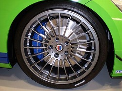 ブレーキは、ALPINA・ブルーにペイントされたキャリパーで、フロントは6ピストン、リアは4ピストンが採用。タイヤはミシュラン製のフロント245、リアは265のサイズです。