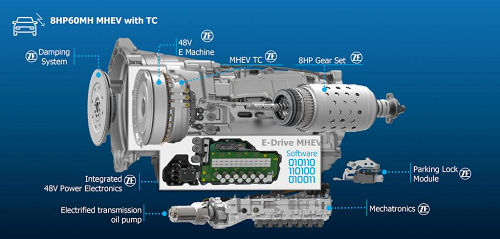 ZF製の8速ATにビルドインされたモーター(第4世代8HPと呼ばれるシステム)