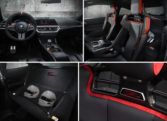 ベースモデルに対して、カーボンやCFRP製品に置き換えたり、装備を簡素化するなどの対応により、軽量化によるスポーツ走行と運動性能向上に寄与しています。この軽量化により、パワーウェイトレシオの数値削減による加速性能の向上だけでなく、ブレーキング性能など運動性能の全てにおいて、BMW M社のモデルの中でもハイパワー軽量化の頂点に相応しい性能を獲得しています。