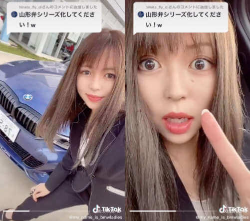 YamagataBMWを運営するモトーレンヤマガタ公認でBMWの魅力を発信しているTikToker(ティックトッカー)の方です。山形弁BMWの美人TikToker(ティックトッカー)として話題になっている点が、同番組内で紹介されました。