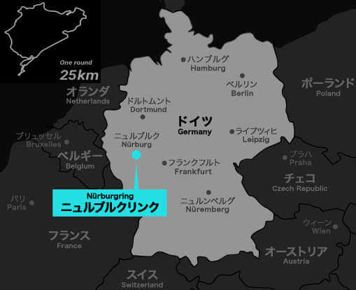 ドイツのニュルブルクリンクサーキット北コース(ノードシュライフ)では、73のコーナーで構成される、一周20.832kmのサーキットである。