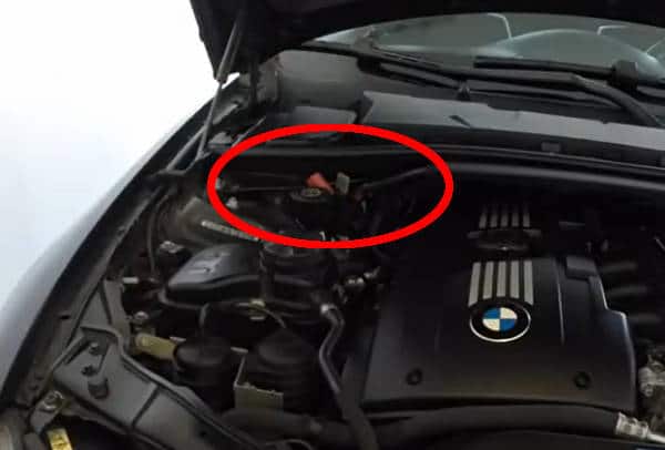 写真は一例です。赤いプラスチックカバーが目印ですが、サービスマニュアルを参照しましょう。