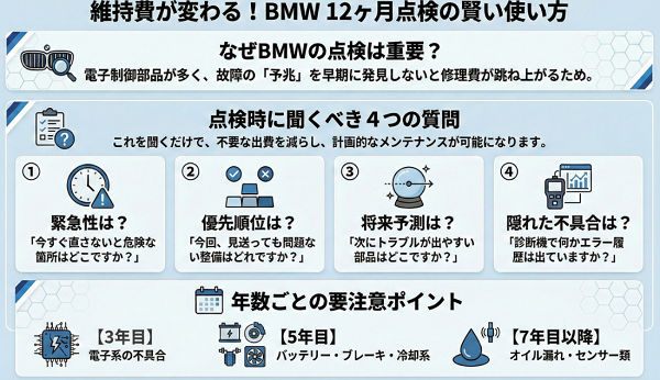 BMWの12ヶ月点検は、「受けるかどうか」ではなく「どう使うか」で価値が変わります。