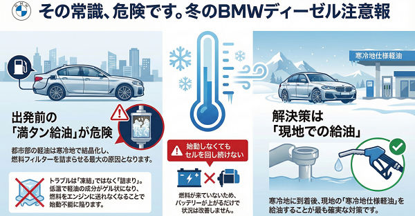 BMWのディーゼルは非常に完成度の高いエンジンですが、冬の寒冷地では「知らずにやってしまう行動」がトラブルの引き金になります。