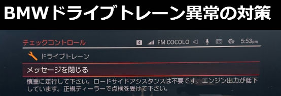 - BMWは高い走行性能を実現するため複雑な電子制御と精密な機械構造を採用しており、異常が発生した際にはメーターに「ドライブトレーン異常」(Drivetrain Malfunction)の警告が表示される。