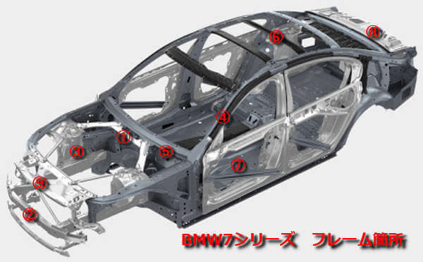 下記のボディ・フレームに対して修正が必要な損傷履歴があると事故車扱いとなります。(社団法人自動車公正取引委員会、財団法人日本自動車査定協会、日本中古車自動車販売商工組合連合会による定義)