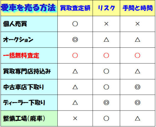 しかし、査定会社、査定マン、需要と供給、キズや修理の見逃し、改造ポイント加点など、様々な要因により査定価格に変動が生じてきます。複数店で一番高く買い取ってくれる所に売る・・・コレ常識です。